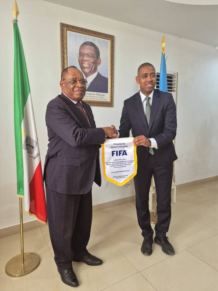 Los ambiciosos proyectos de la FIFA para el desarrollo del fútbol Ecuatoguineno, siguen llegando a favor de los practicantes y dirigentes del balón pie nacional, este jueves, a traves de la reunión Mantenida entre el ministro de Estado de Educación, Ciencias Enseñanza Profesional y Deportes, Clemente ENGONGA NGUEMA ONGUENE, con los emisarios de Gianni Infantino presidente de la FIFA.