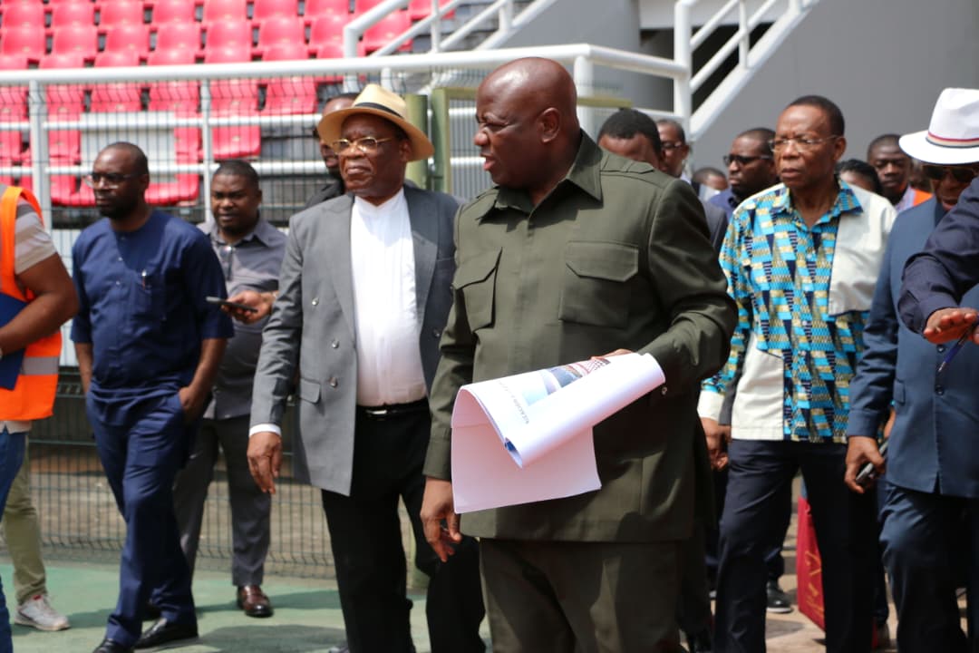 La siguiente parada fue el Estadio de Bata, donde se constató el deterioro de varias áreas por falta de mantenimiento. El Primer Ministro instruyó a los responsables adoptar medidas urgentes para recuperar la funcionalidad y la imagen del recinto deportivo en el menor tiempo posible.