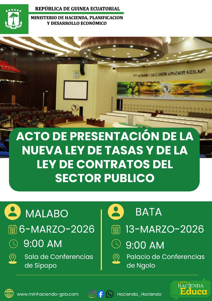 Home Actualidad Nacional Invitación abierta para asistir al acto de presentación de la nueva Ley de Tasas y de Contratos del sector público en Malabo y Bata