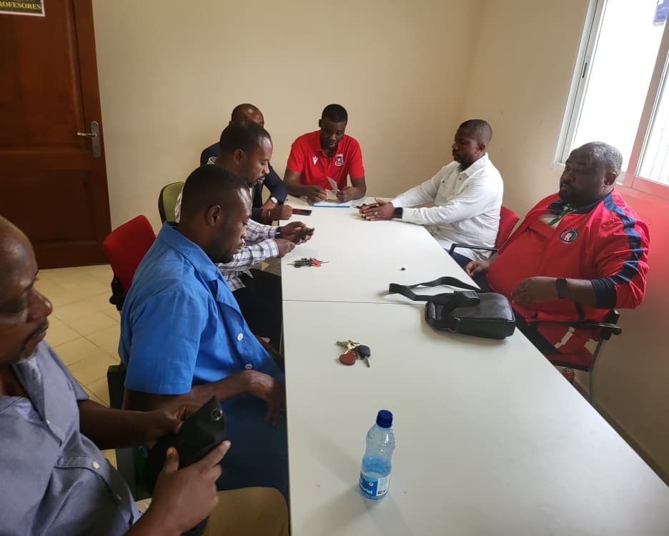 La parada en Mongomo incluyó una reunión de trabajo con la participación de los directivos de centros educativos y del Inspector Distrital de Deporte, Desiderio Ntugu Nguema. Durante el encuentro se entregaron documentos administrativos y resoluciones, así como dos equipajes completos de fútbol destinados al INES Mongomo y al Colegio Akuakam, además de cinco balones y cinco equipajes completos de árbitros, materiales clave para el desarrollo de las competiciones escolares.