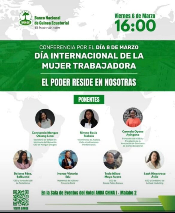 En el marco de las actividades programadas en Malabo con motivo del Día Internacional de la Mujer, el Banco Nacional de Guinea Ecuatorial ha anunciado la celebración de una conferencia bajo el lema “El poder reside en nosotras”, una frase que busca resaltar la fortaleza, la capacidad y el liderazgo de la mujer en la sociedad.