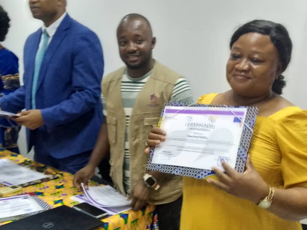 Durante la ceremonia de clausura se llevó a cabo la entrega de certificados a las personas participantes, reconociendo su compromiso y el aprovechamiento de la formación. En su intervención, el Director General de Sociedad Civil destacó la importancia de «reforzar el papel de las organizaciones como actores clave en la lucha contra la violencia de género y en la construcción de comunidades más seguras y equitativas en Guinea Ecuatorial».